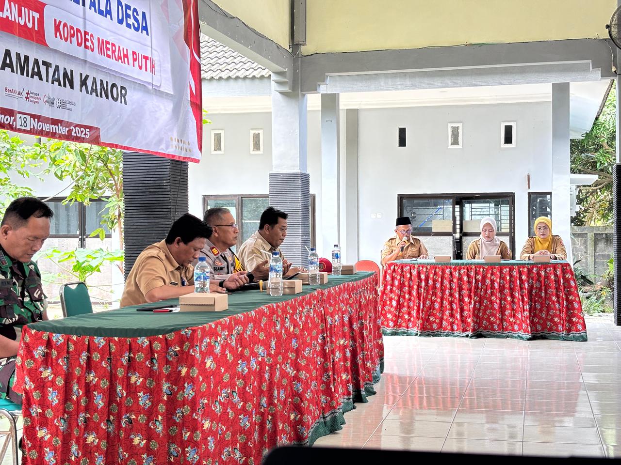 Konferensi dinas Kepala Desa se Kecamatan Kanor untuk bulan November 2025 ini dalam rangka tindaklanjut Program Koperasi Desa Merah Putih. Hadir dalam konferensi tersebut sebagai narasumber adalah Camat, Kapolsek dan Danramil Kanor. selanjutnya para narasumber diatas menyampaikan materi berdasarkan kapasitas dan fungsinya masing-masing. untuk mendukung program pemerintah yaitu Koperasi Desa Merah Putih, seluruh Kepala Desa melalui forum tersebut telah menyepakati percepatan pembangunan gedung Koperasi Desa Merah Putih pada tahun 2025 ini. adapun naskah Berita Acara Kesepakatan dimaksud dapat diakses melalui link yang tertera di https://drive.google.com/file/d/1FvtDWA6-WXhDTTt3XIxGX2tIK9cDNaQN/view?usp=sharing