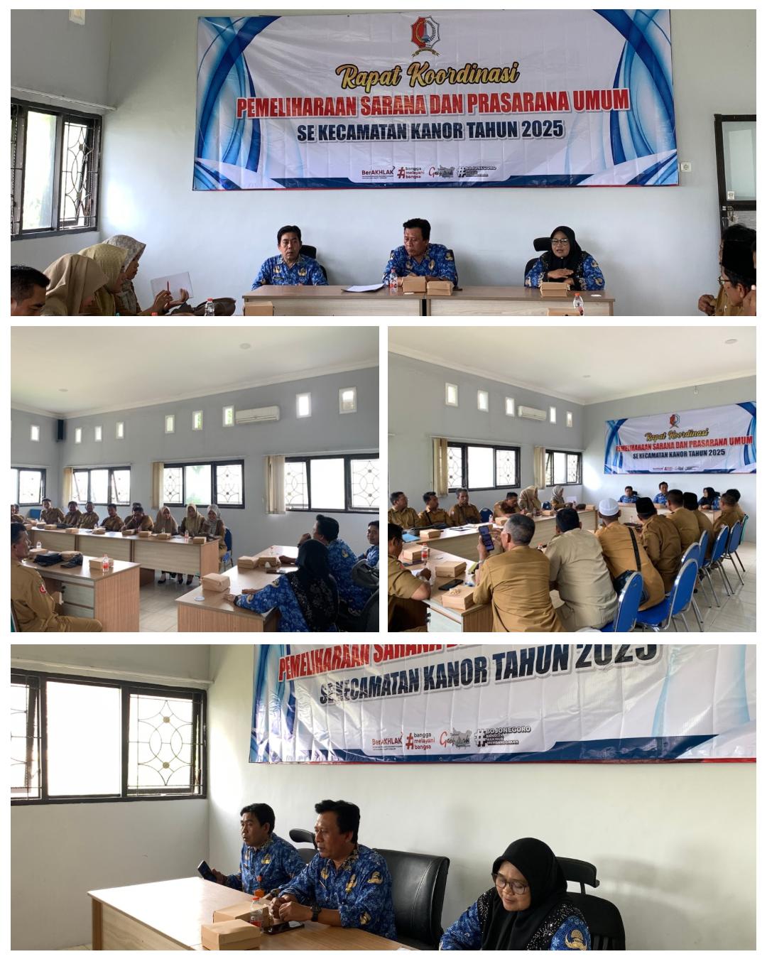 Kanor, 1 Desember 2025 — Kecamatan Kanor menyelenggarakan Rapat Koordinasi Pemeliharaan Sarana dan Prasarana Umum Desa se-Kecamatan Kanor Tahun 2025, pada tanggal 1 Desember 2025 pukul 10.00 WIB sampai dengan selesai, yang berlangsung di Kantor Kecamatan Kanor. Kegiatan ini dihadiri dan diisi oleh Camat Kanor, Kasi PMD Kecamatan Kanor, Seksi Kesejahteraan Kecamatan Kanor, serta perwakilan perangkat desa dari seluruh desa se-Kecamatan Kanor.