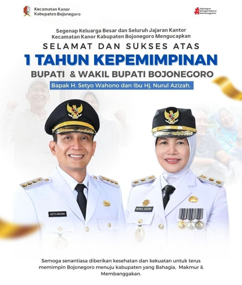 Selamat dan Sukses atas Satu Tahun Kepemimpinan Bapak Bupati Bojonegoro Setyo Wahono dan Ibu Wakil Bupati Bojonegoro Nurul Azizah.